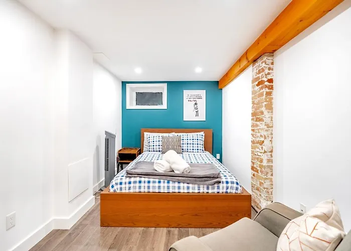 Außerdem gibt es eine Mikrowelle, einen Wasserkocher und einen Kühlschrank in einer kompletten Küche. Das Restaurant Indie Ale House mit kanadischen Gerichten liegt lediglich 13 Gehminuten von hier entfernt. Eine 15-minütige Fahrt führt zum Flughafen Toronto-City.